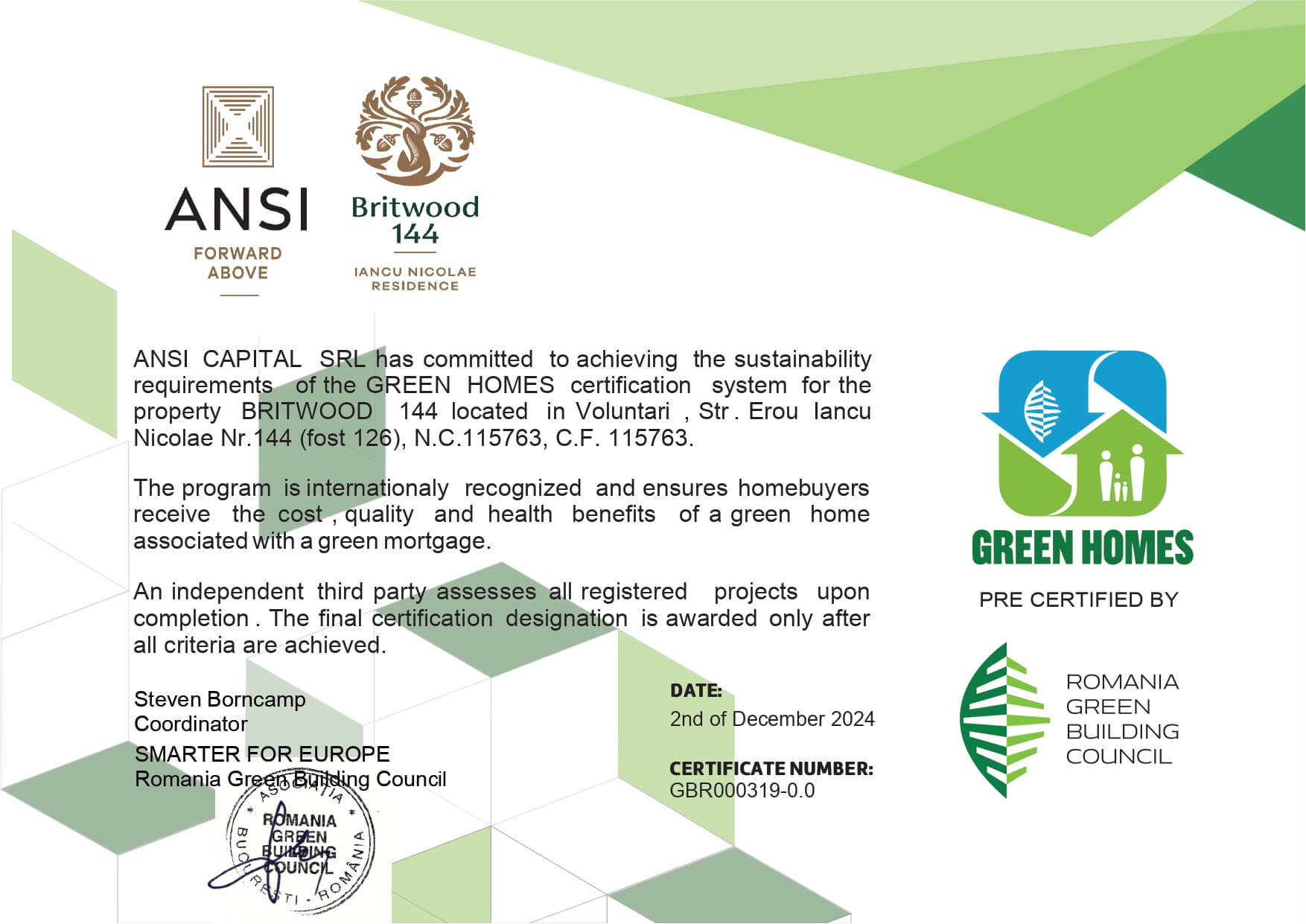 CERTIFICAT GREEN HOMES